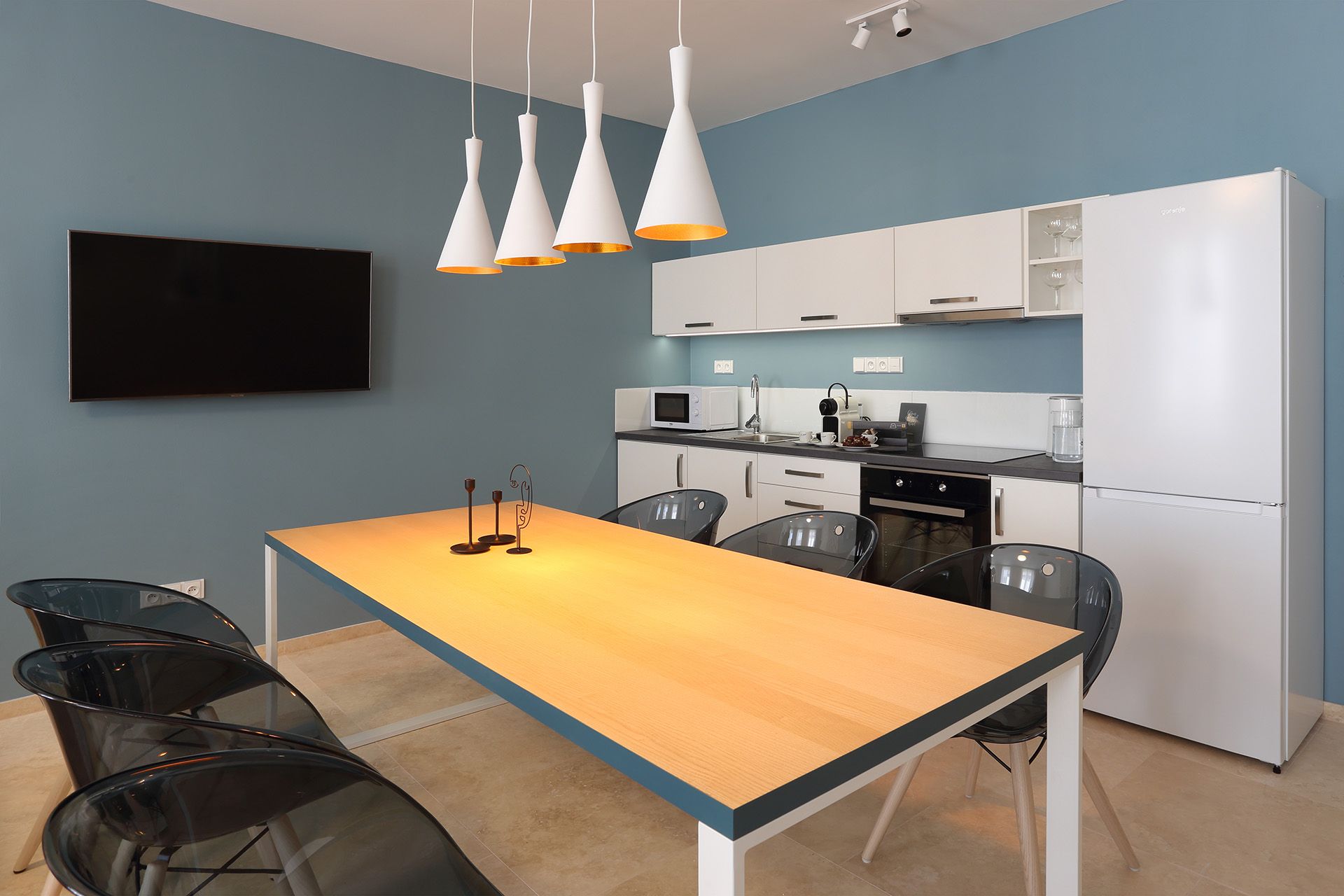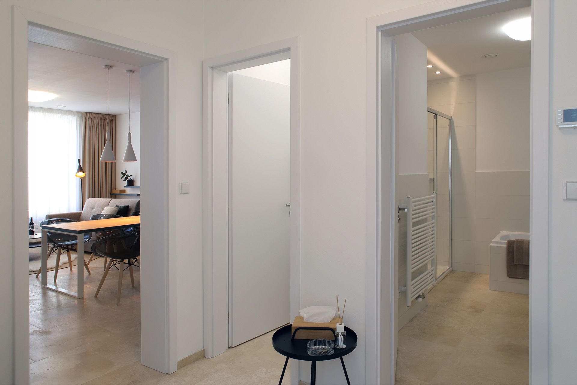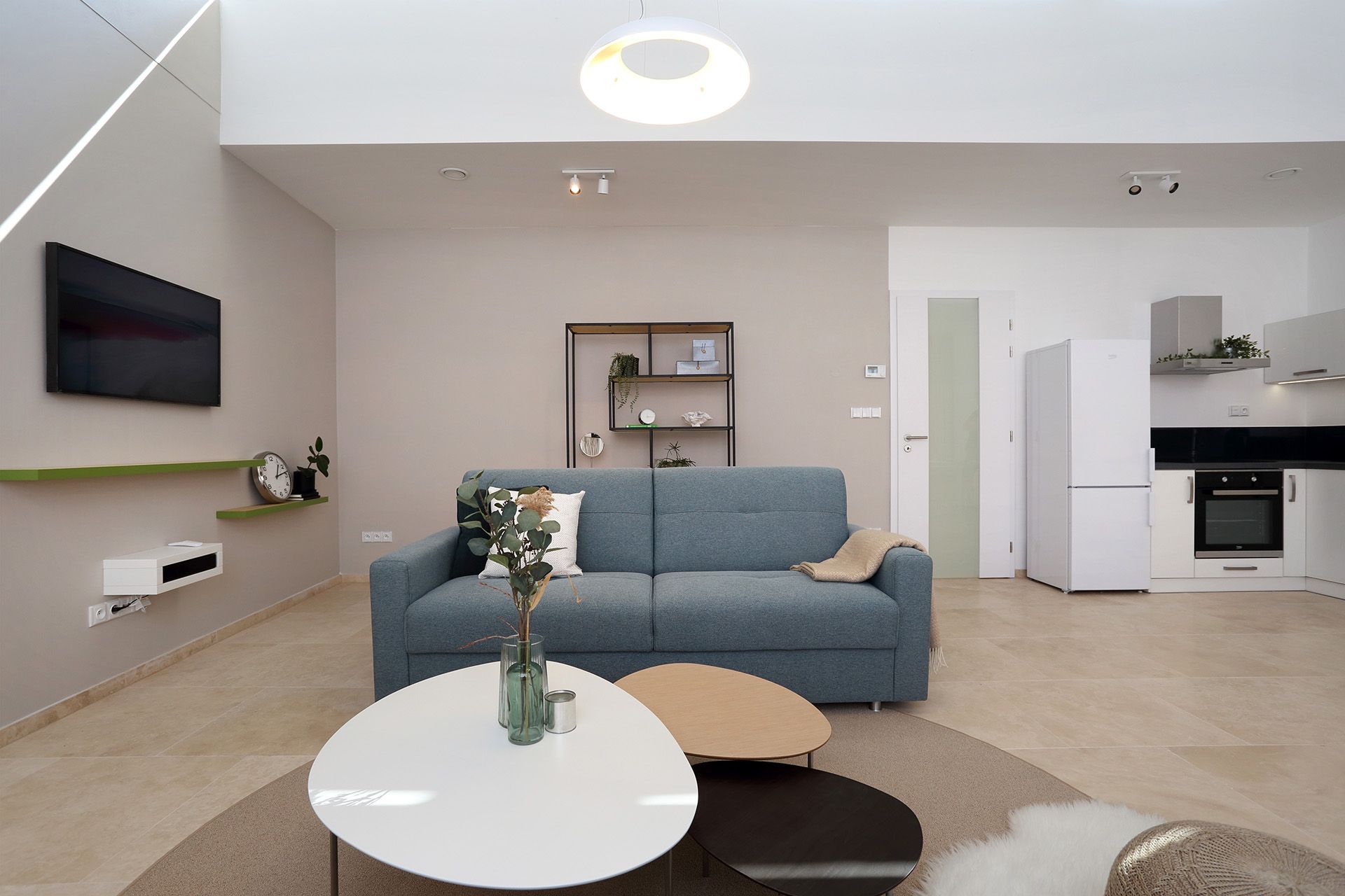 Samotné apartmány vynikají vzdušností a vysokými stropy – to jsme záměrně podpořili vybavením, aby prostory působily otevřeně, ale přitom útulně. Hosté si zde mohou vychutnat dostatek prostoru, klidnou atmosféru a zároveň ocení praktičnost a pohodlí, které jim usnadní pobyt. Chtěli jsme vytvořit interiér, který je nejen funkční pro krátkodobé ubytování, ale zároveň poskytne příjemný zážitek – místo, kde se návštěvníci budou cítit vítaní a kam se budou chtít znovu vracet.